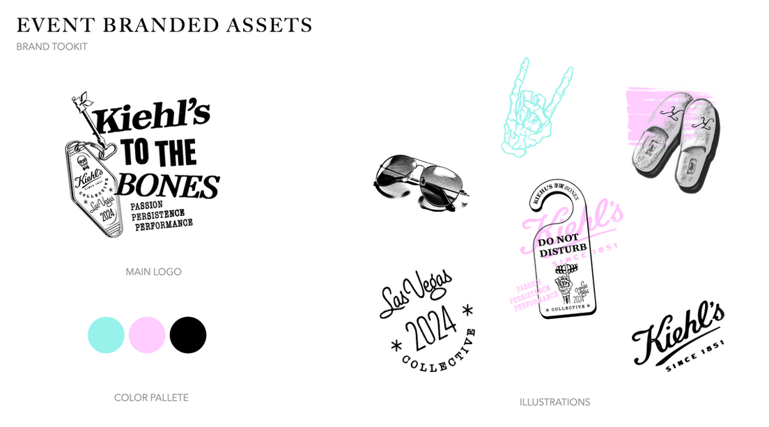 Led the creative and print execution for Kiehl’s Collective in Vegas, bringing the event to life through a mix of environmental graphics, collateral prints, and digital animations. Oversaw the entire process from concept to production, ensuring a seamless and cohesive brand experience.